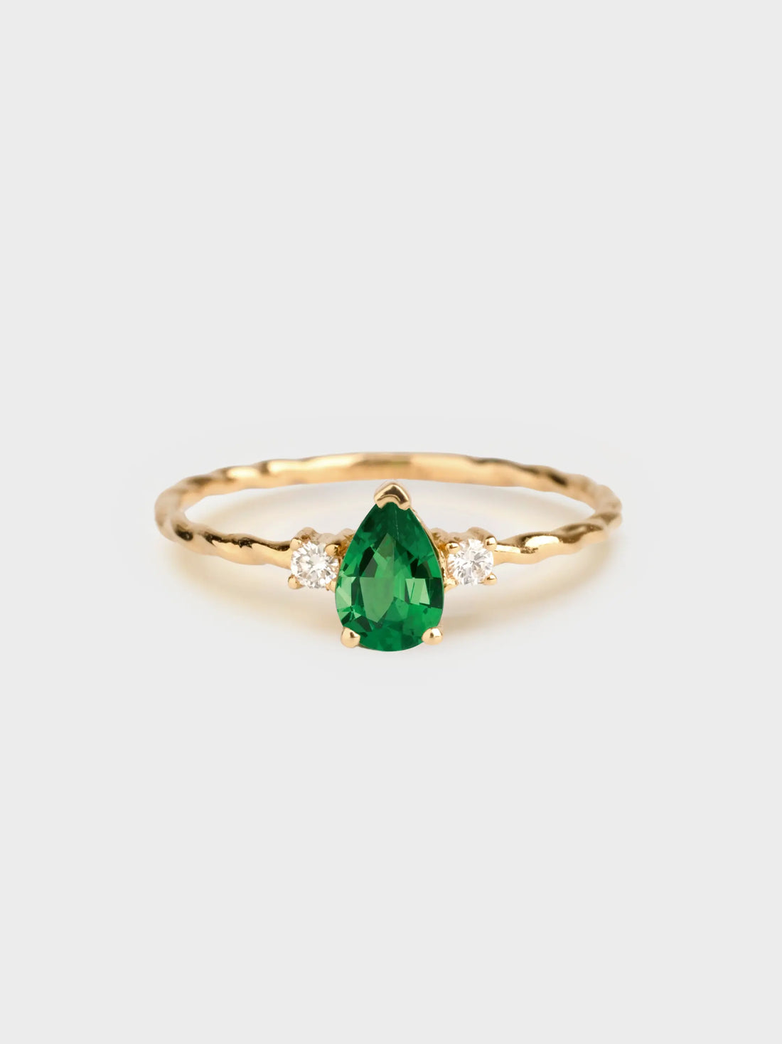 Drop Tsavorite Diamond Three-stone Flow Thin Ring
