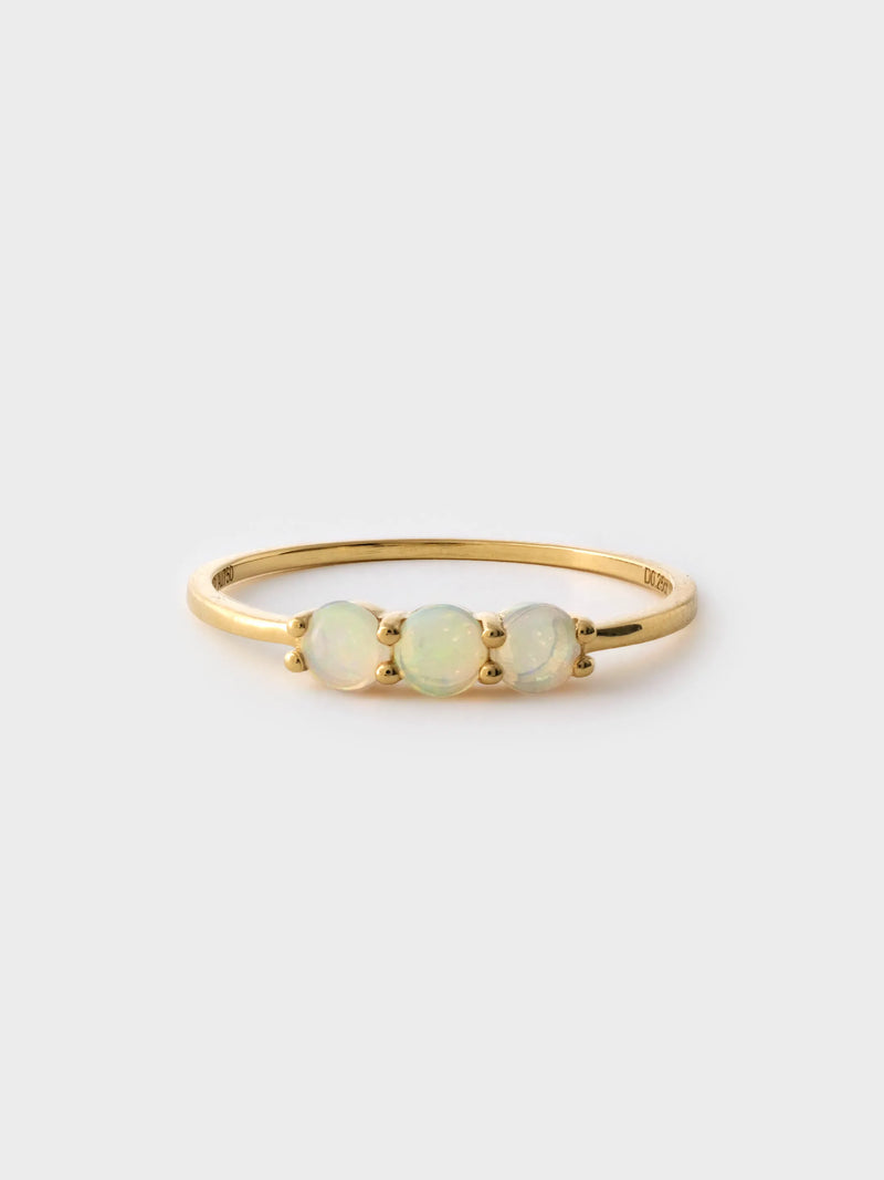 Round Australian Opal Three Stone Ring in 14k or 18k solid gold