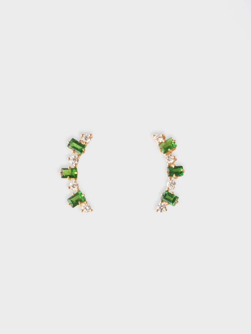 Curved Tsavorite Garnet and Diamond Earrings