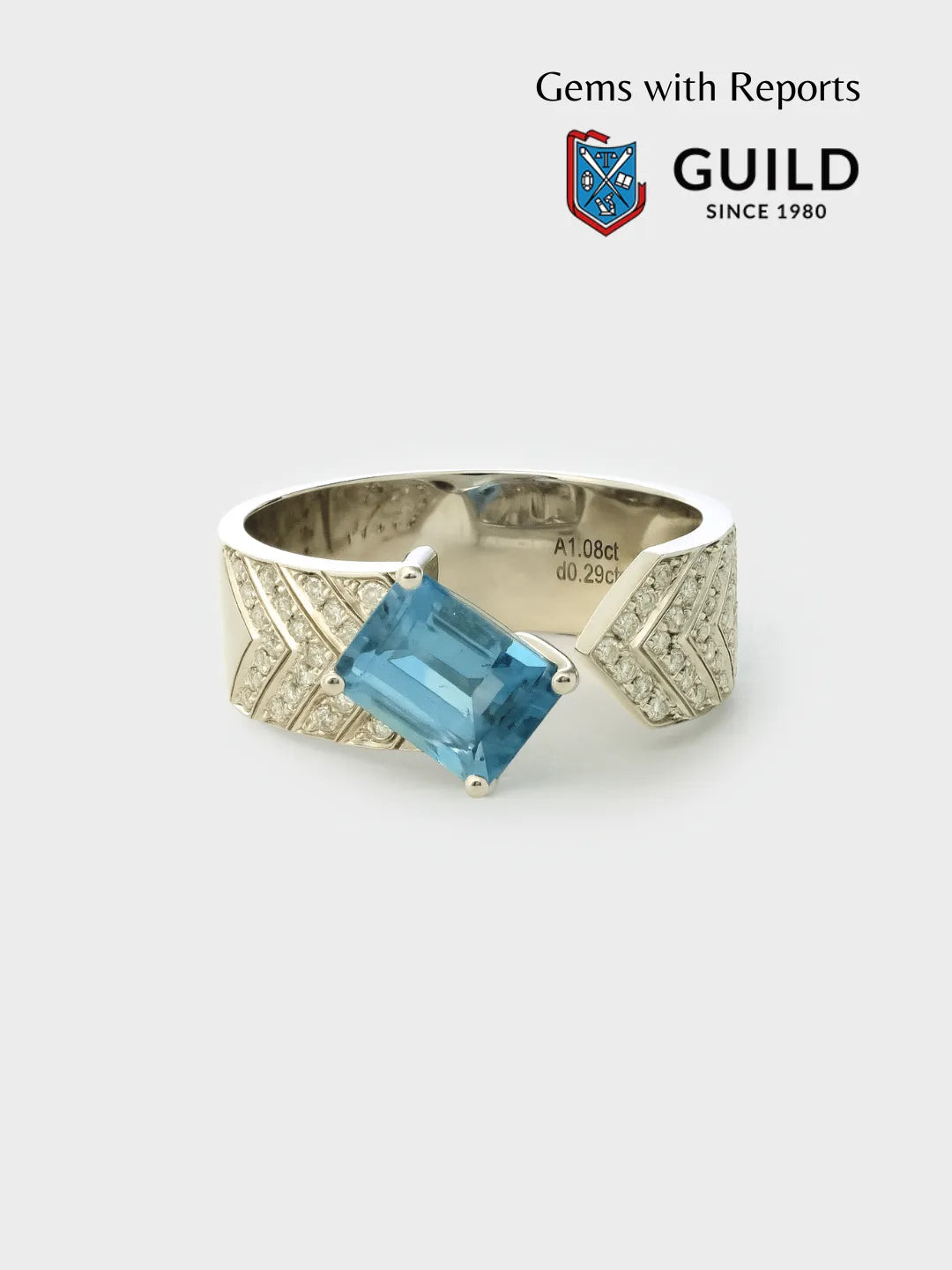 Octagonal Aquamarine and Diamond Band Ring, 18k solid white gold