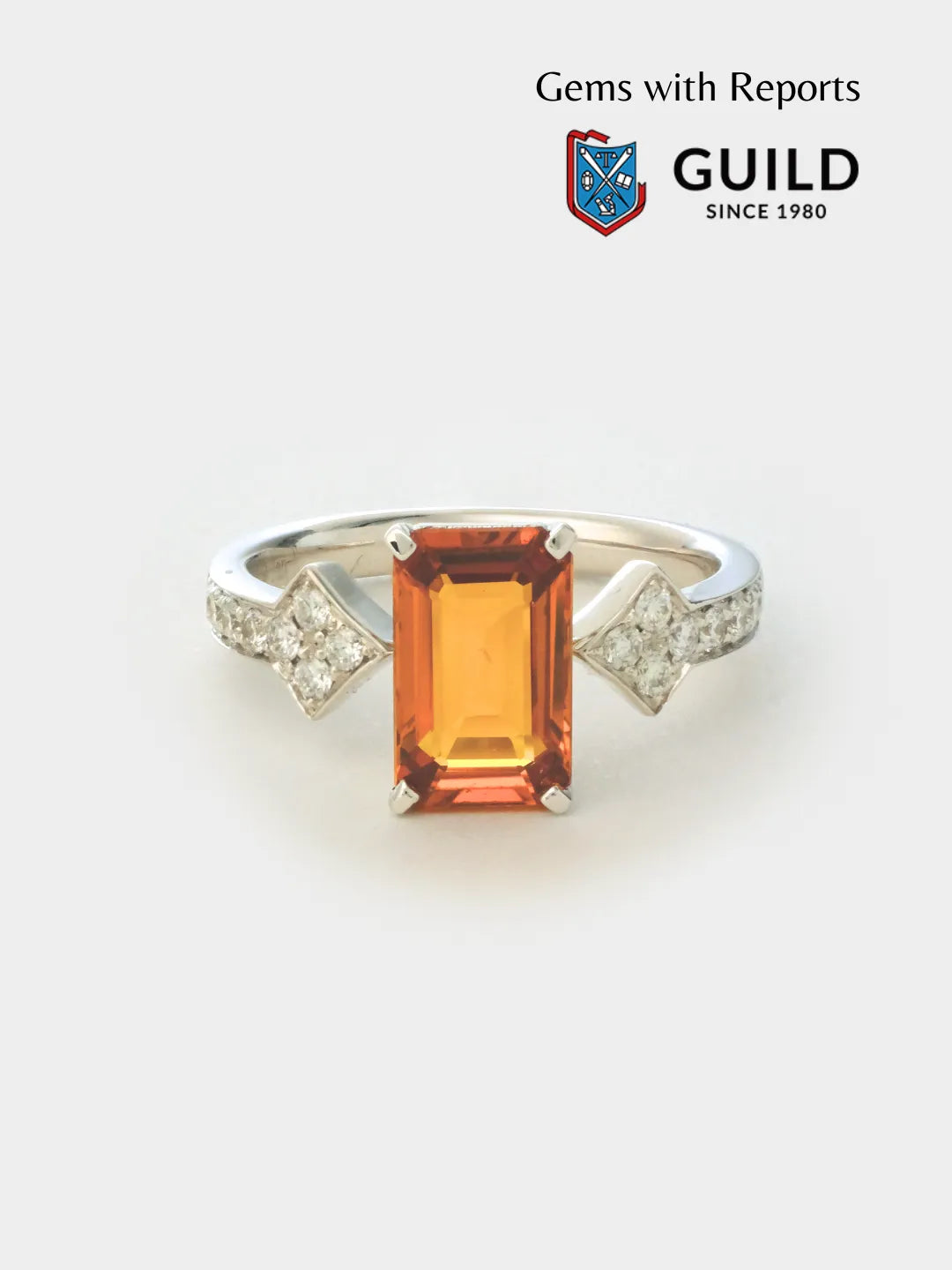Orange Sapphire Octagonal Diamond Ring, 18k solid gold
