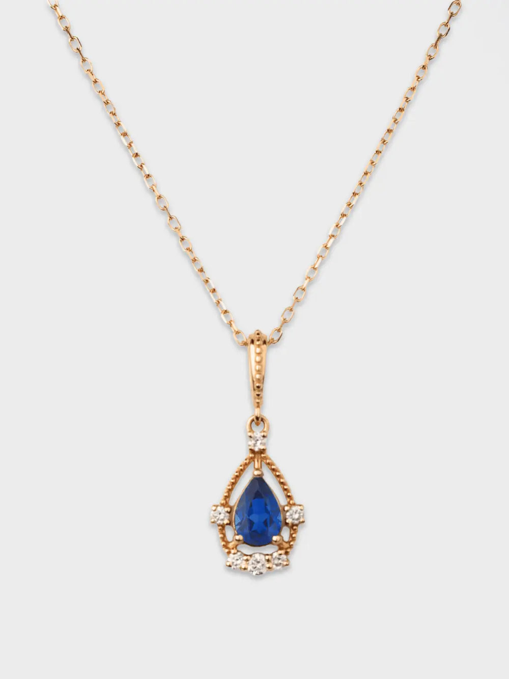 This pendant necklace exudes romantic elegance with its vintage-inspired frame and pear-shaped gemstone. Its versatile clasp fits most chains and pairs perfectly with our pearl necklaces, offering timeless style and endless versatility.