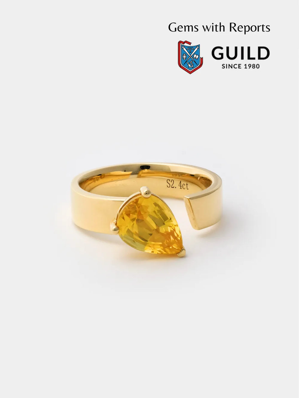 Drop Shaped Yellow Sapphire Open Band, 18k solid gold