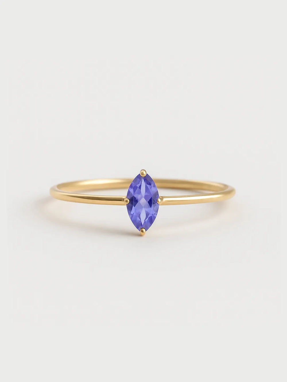 A thin ring with a Marquise-shaped tanzanite, perfect for everyday wear or layered with other rings.