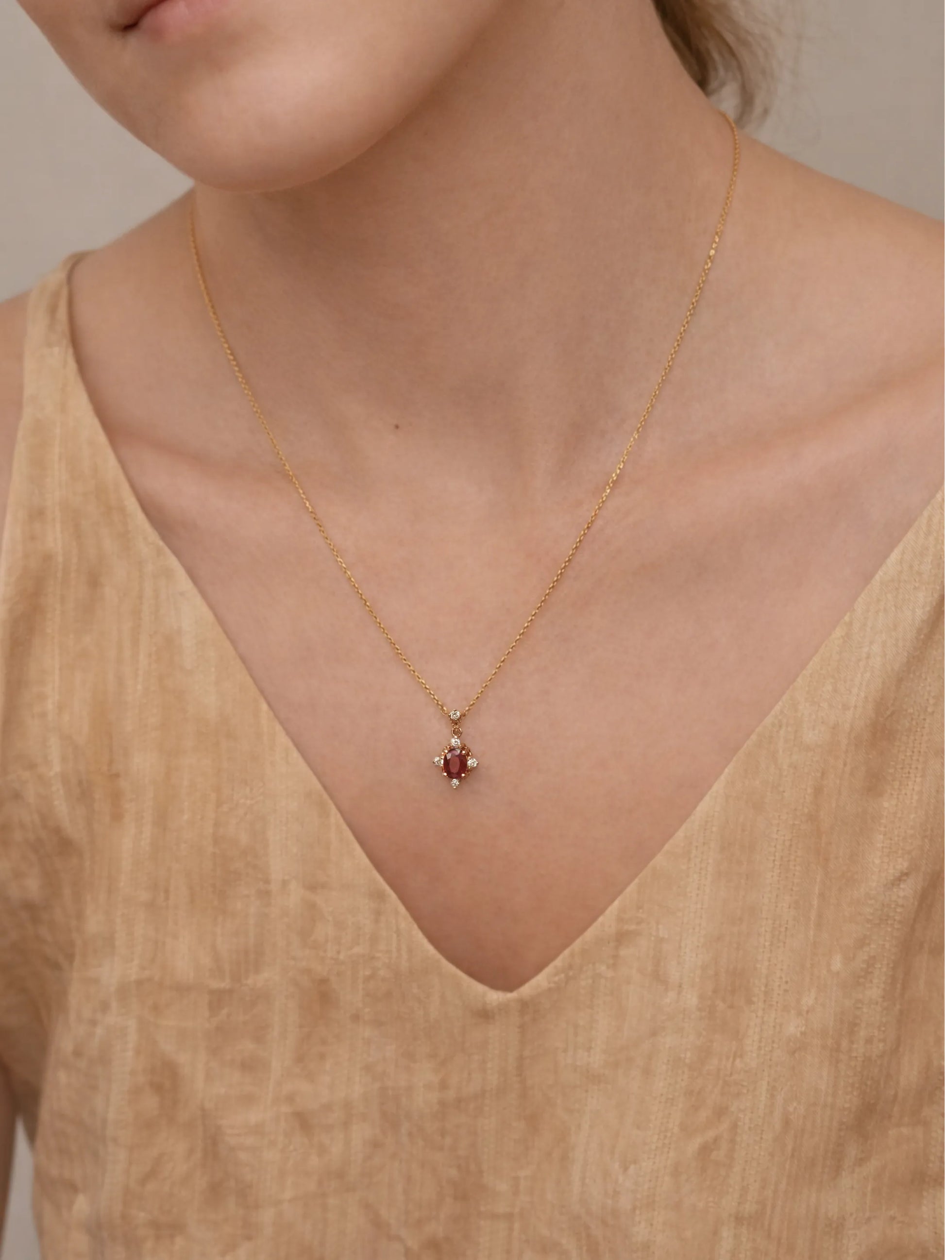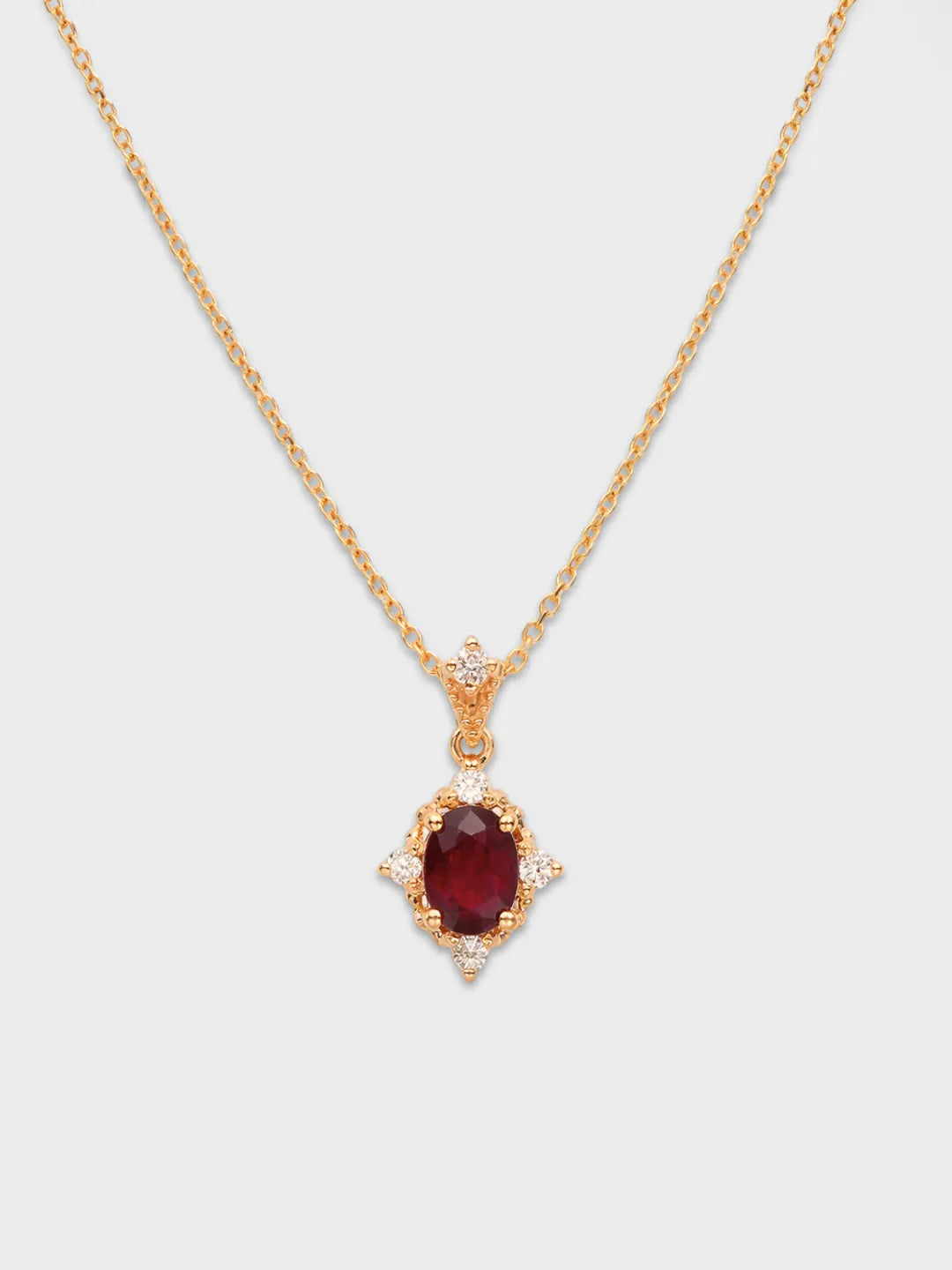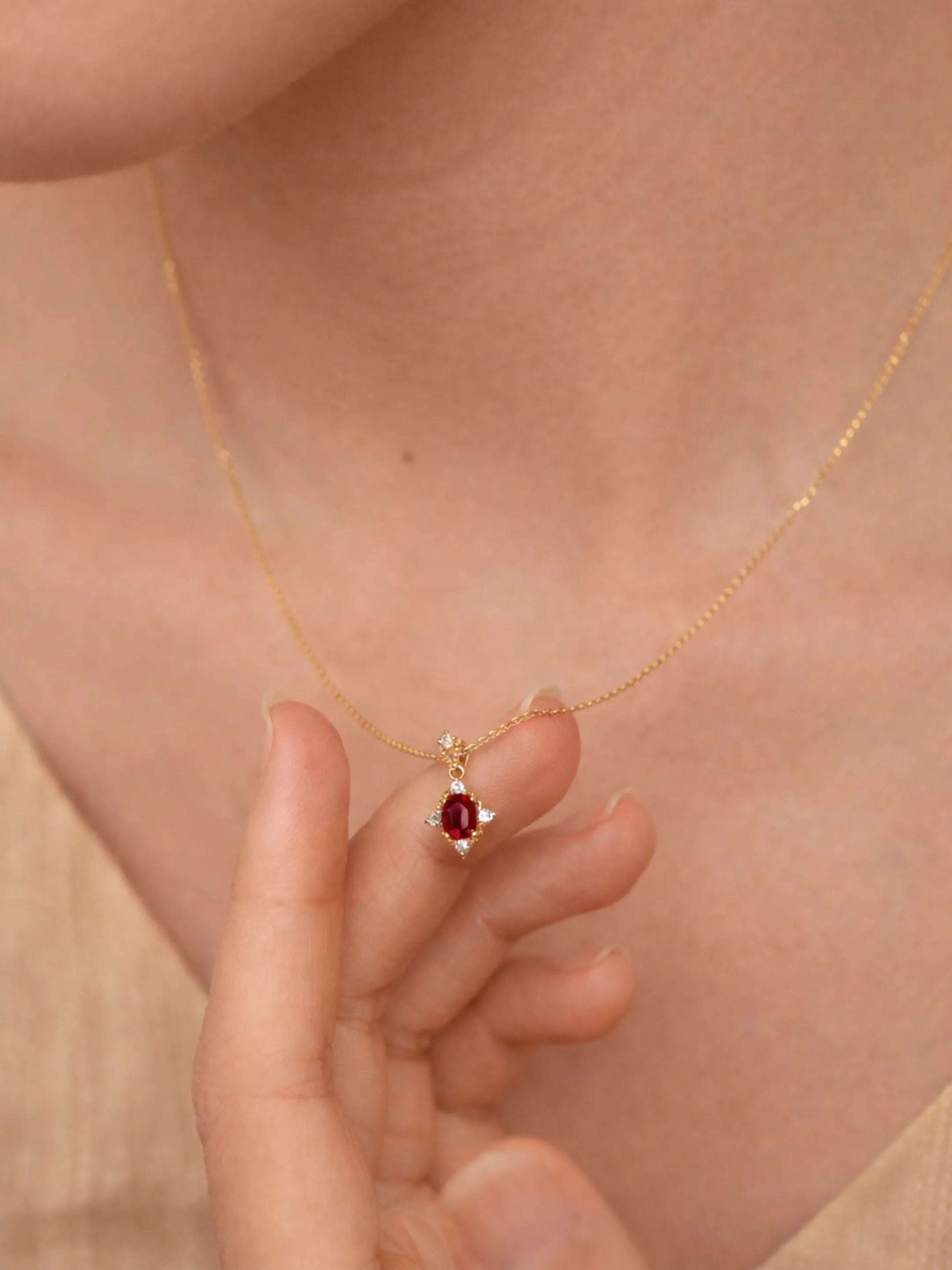 A rich oval ruby framed by delicate diamonds, set in solid gold. Romantic, refined, and easy to wear every day.
