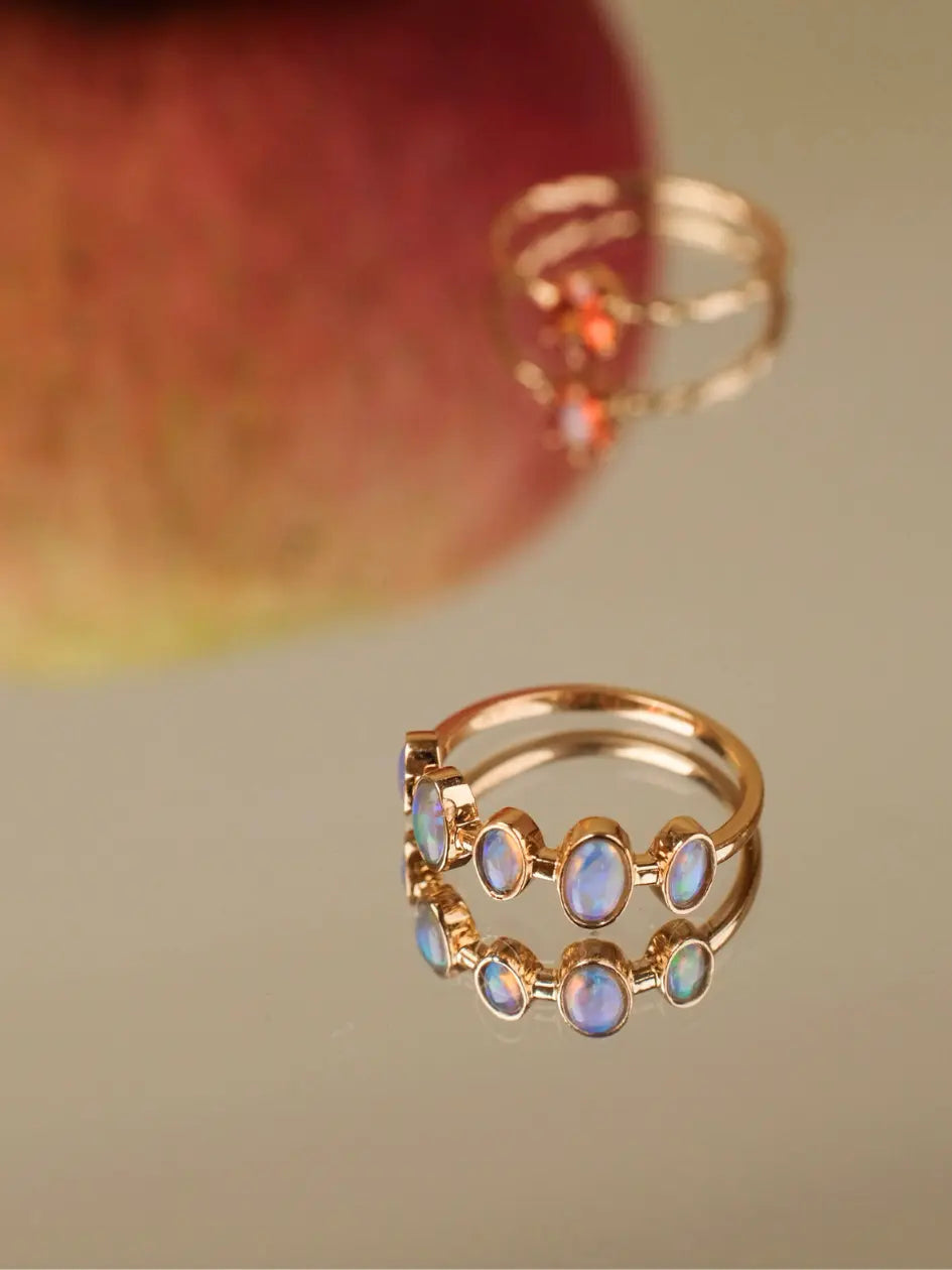 Avoid exposing opal to water, chemicals, and harsh cleaning methods. Instead, gently wipe the jewelry with a soft cloth, and store each piece individually in a cool, dry, and protected environment.