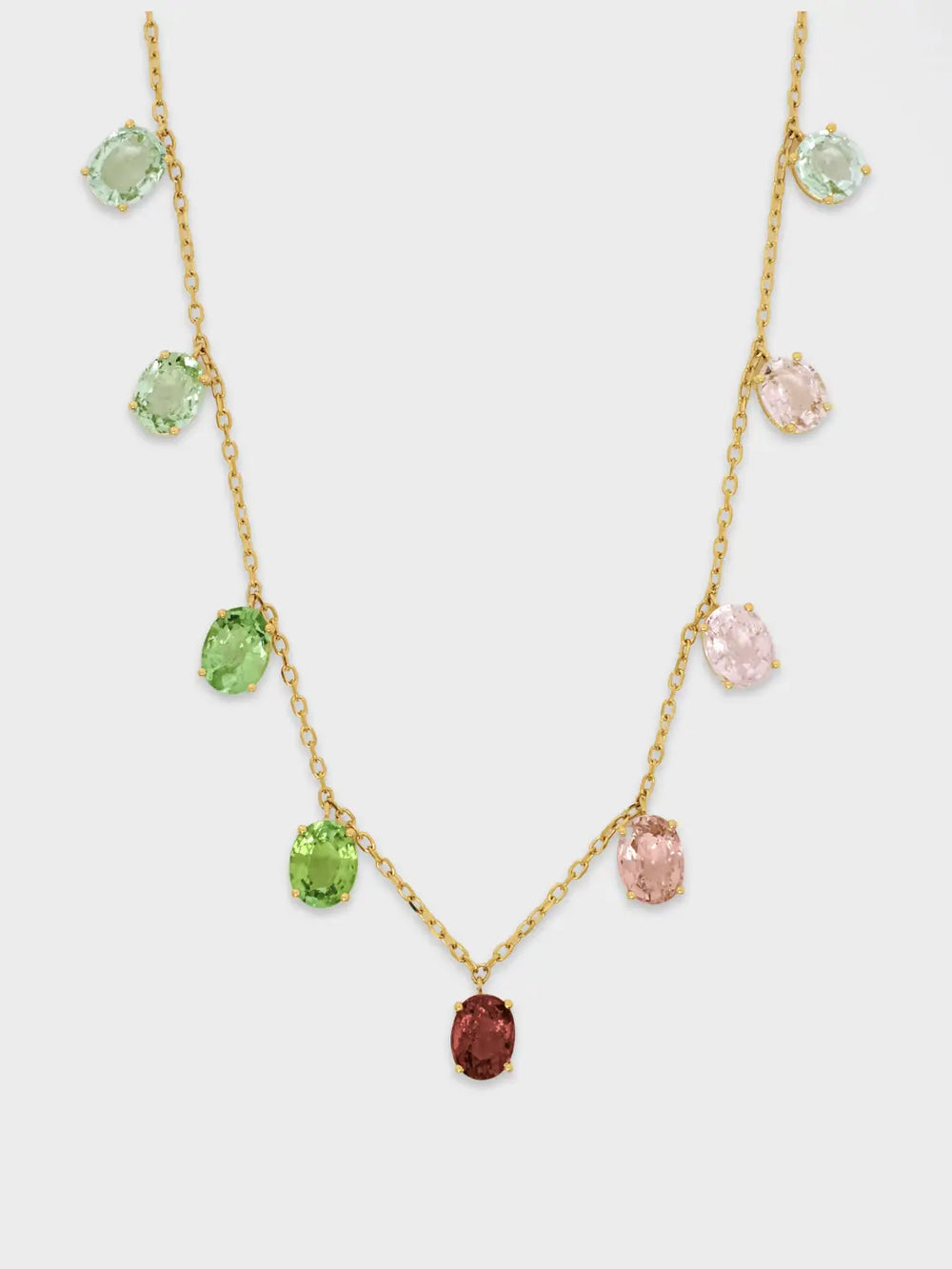 Design your own Tourmaline Necklace, Select a tourmaline set with incredible color to be the focal point of your design. With a captivating ritualistic aura, this unique necklace showcases carefully selected tourmalines arranged in a gradient, evoking a sense of enchantment and beauty.