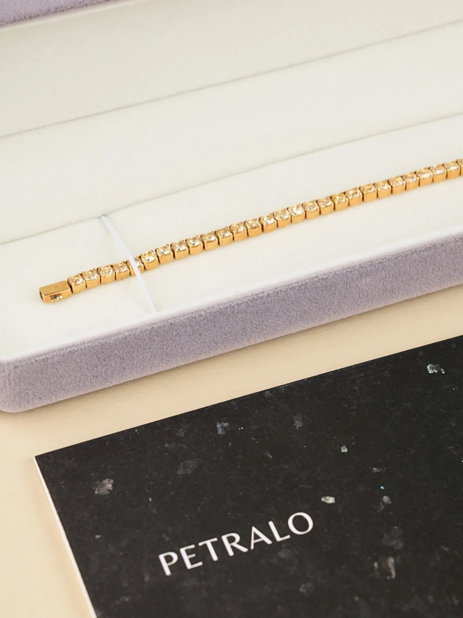 Crafted in your choice of 14k or 18k gold, this stunning tennis bracelet showcases a continuous line of natural yellow diamonds. The vibrant sparkle of each carefully set diamond is enhanced by the warm glow of gold, creating a timeless piece of luxury perfect for both everyday elegance and special occasions.